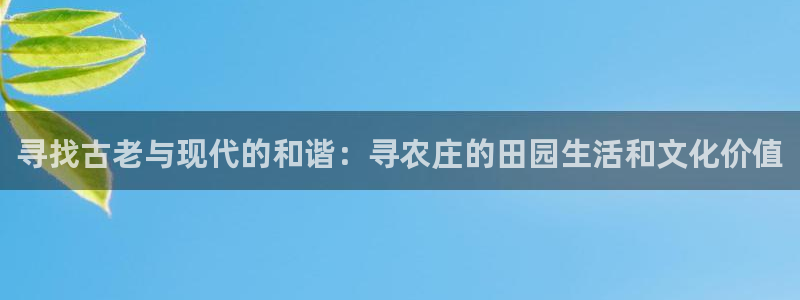 天辰娱乐44616:寻找古老与现代的和谐:寻农庄的田园生活和文化价值